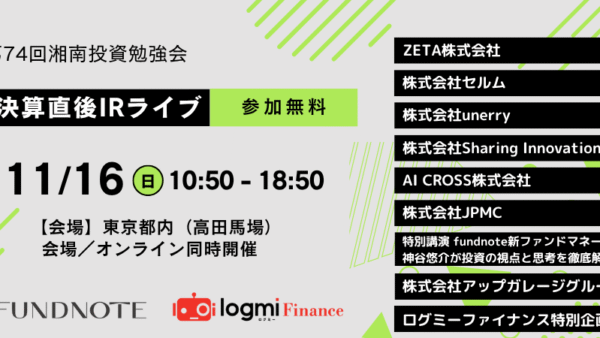 2025年11月16日(日)10:50~ 第74回 湘南投資勉強会/新企画IRライブ/特別講演 fundnote新ファンドマネージャー神谷悠介が投資の視点と思考を徹底解説!(都内)