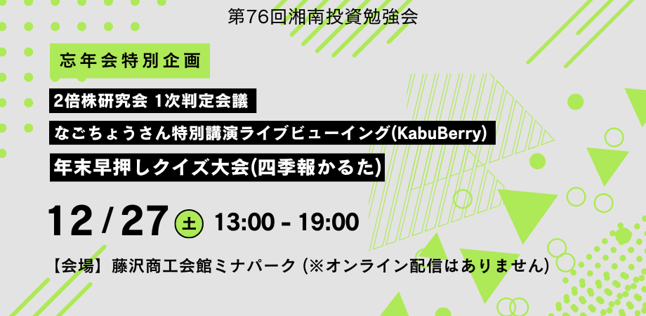四季報の【見出し】を読み上げ、銘柄名を早押しで答える早押しクイズ企画を開催します。